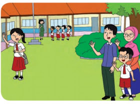 Saat pergi ke sekolah lani selalu diantar oleh ayah dan ibu